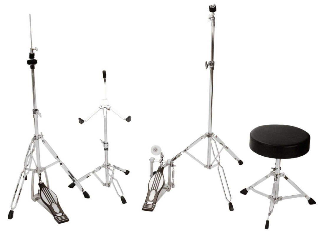 • Includes a full set of double braced hardware, Hi Hat & Crash/Ride cymbals, throne and drum sticks!