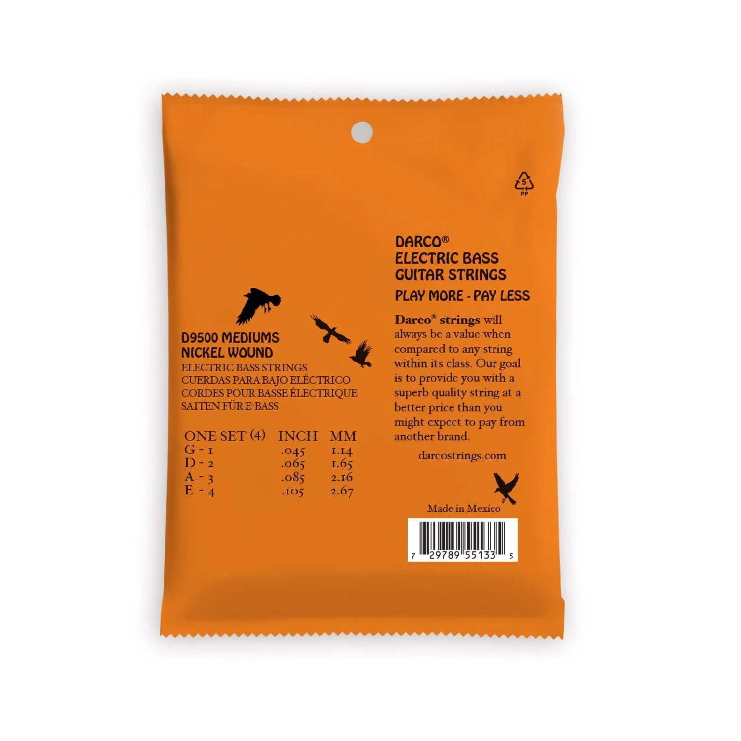 Darco Electric Bass strings are meticulously constructed of authentic nickel and steel at a price that allows bass players to keep a spare set of strings in their gig bag and a few extra sets in the van, the studio, and at home. Darco offers bass players that pre-gig-peace-of-mind or heading-to-the-studio fresh set string change. Play more. Pay Less.