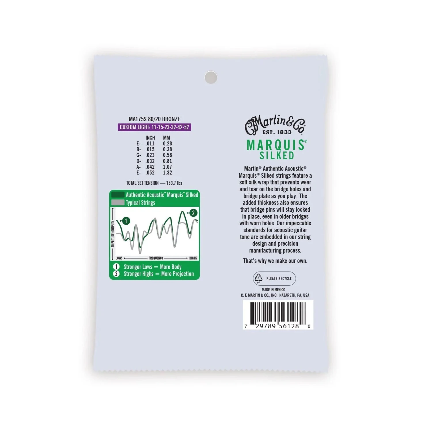 Martin Authentic Acoustic Marquis Silked strings feature a soft silk wrap that prevents wear and tear on the bridge holes and bridge plate as you play. The added thickness also ensures that bridge pins will stay locked in place, even in older bridges with worn holes. Our impeccable standards for acoustic guitar tone are embedded in our string design and precision manufacturing process. That’s why we make our own.