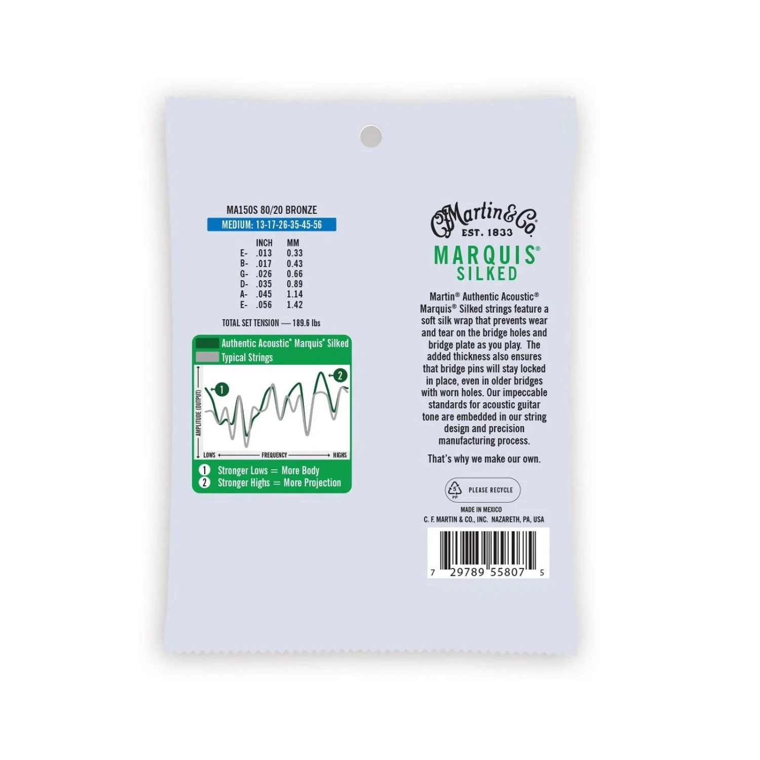 Martin Authentic Acoustic Marquis Silked strings feature a soft silk wrap that prevents wear and tear on the bridge holes and bridge plate as you play. The added thickness also ensures that bridge pins will stay locked in place, even in older bridges with worn holes. Our impeccable standards for acoustic guitar tone are embedded in our string design and precision manufacturing process. That’s why we make our own.