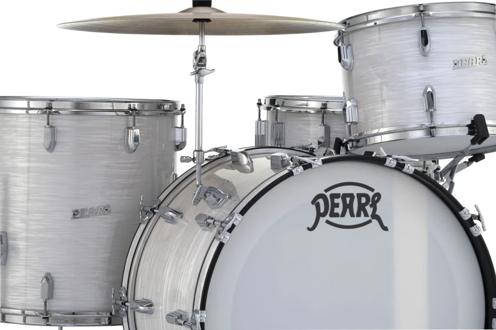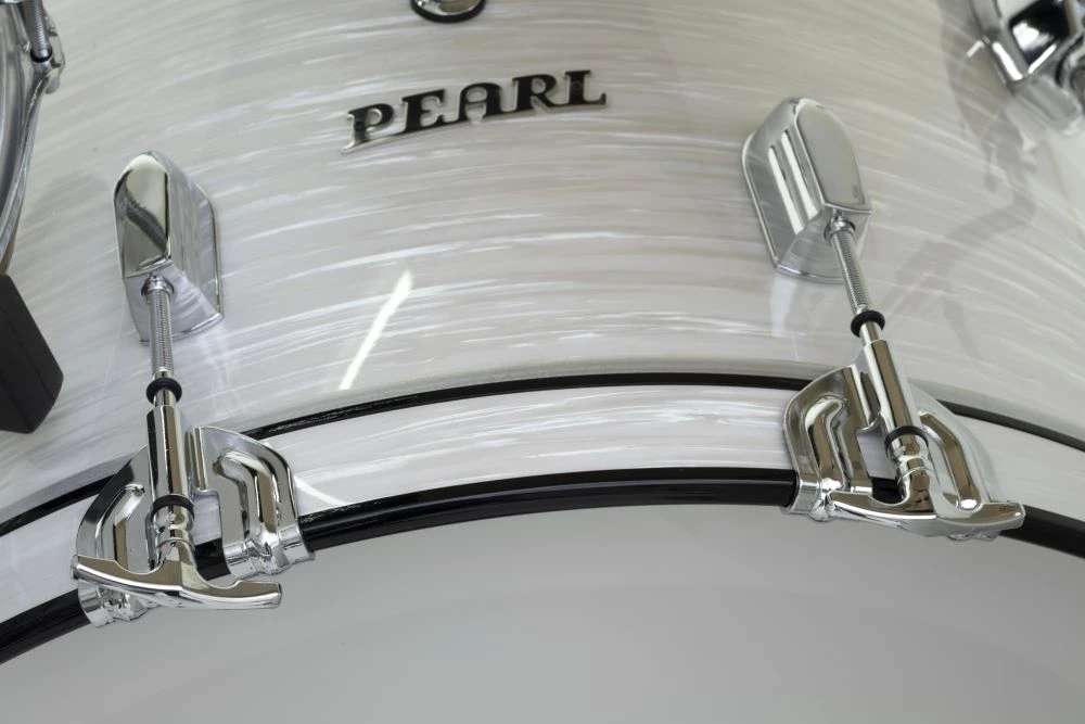 - Classic Pearl “Battleship” lugs, Gullwing Spurs, and Bass Drum Mount Cymbal Holder
