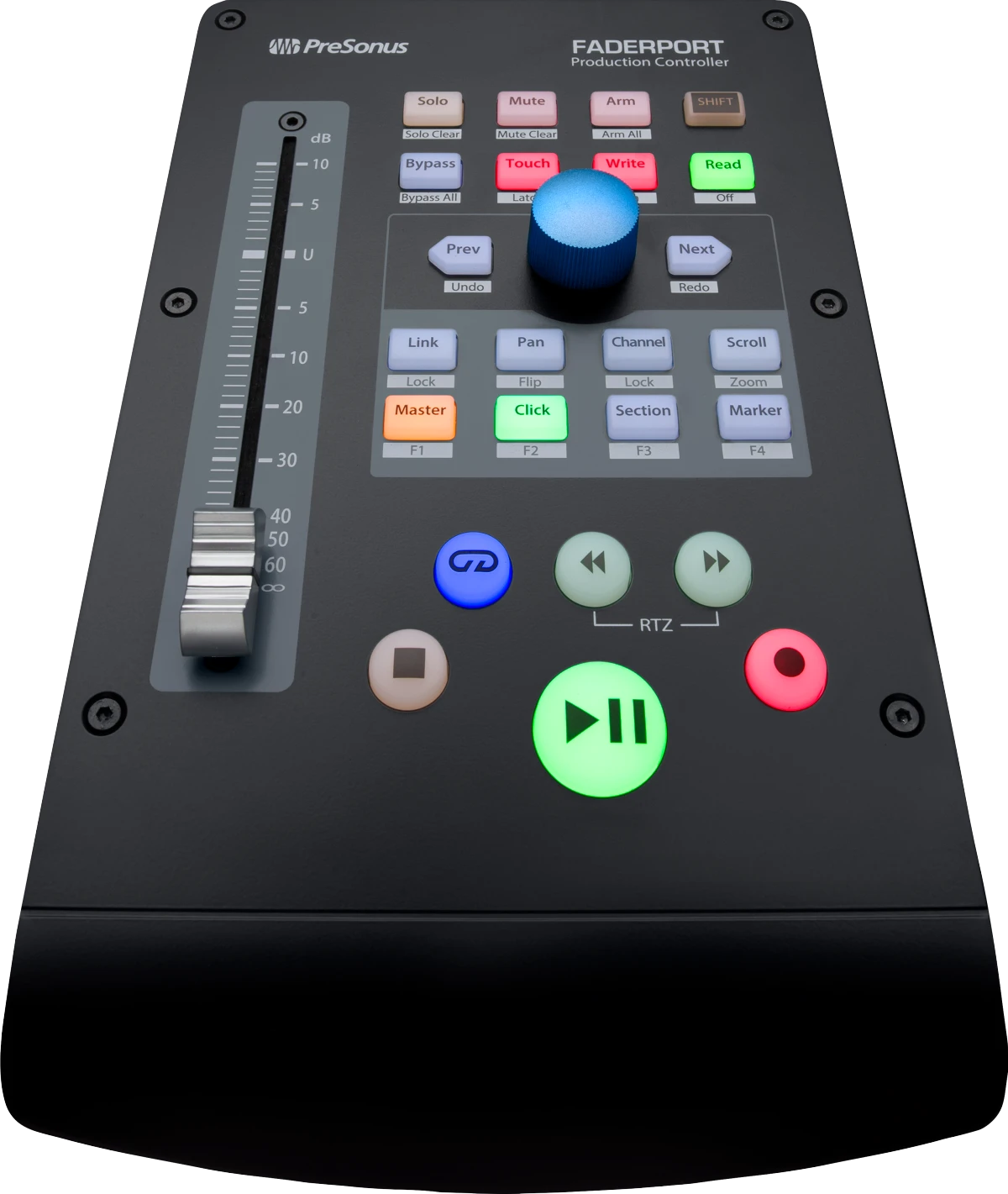 Write fades and automation in real-time with the FaderPort’s 100 mm touch-sensitive, motorized fader. Quickly zoom in on audio files for editing. Control track levels with the touch of a finger. With the FaderPort, you’ll enjoy the fastest, most efficient workflow you’ve ever experienced.