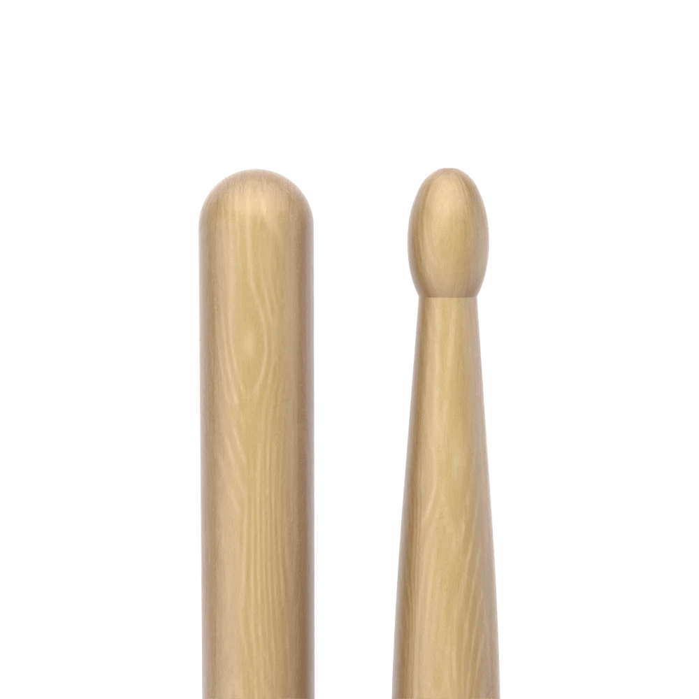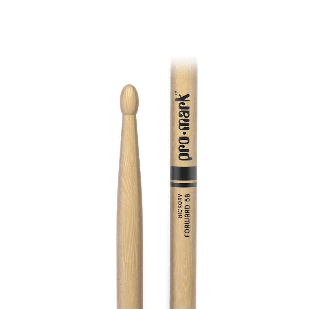 The ProMark Classic Forward 5B drumstick features an oval tip shape and a short taper, producing a forward-weighted feel for increased power.
