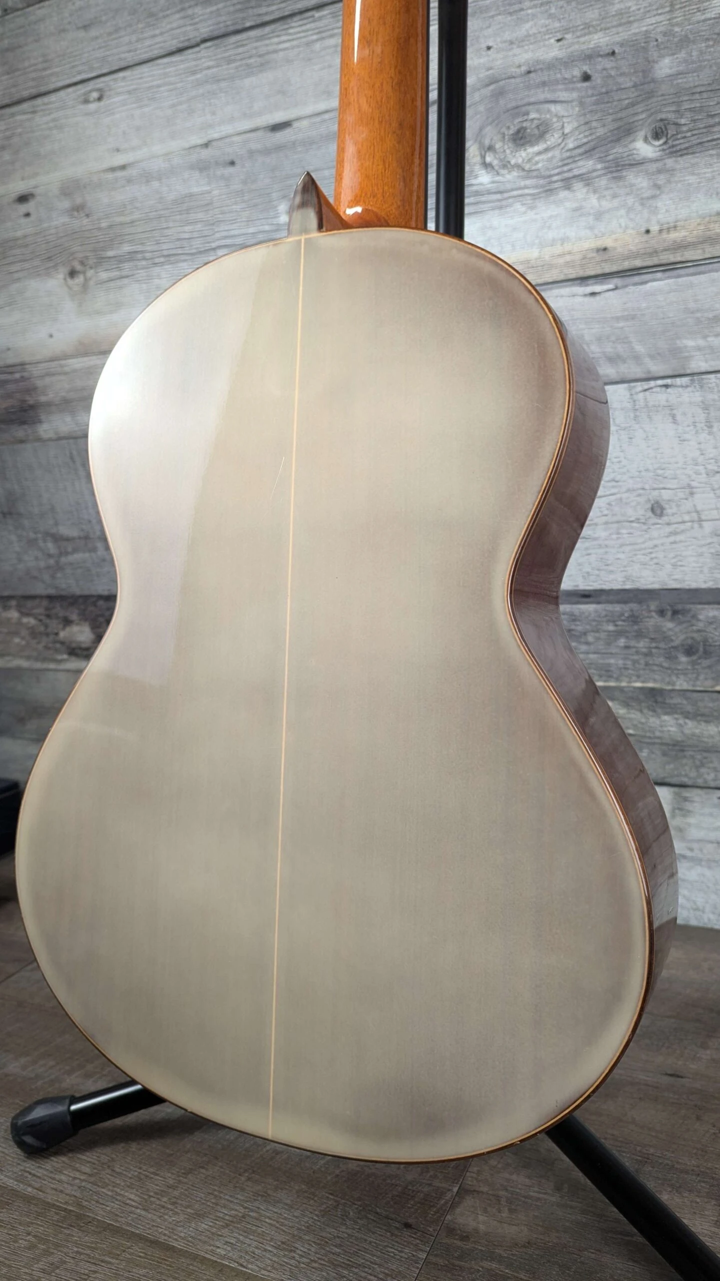 Part of the entry level R line the R1 features African mahogany sides and back, solid Canadian red cedar top, ebony fingerboard, Fustero tuners, and lacquer finish. The sound has a sweet, endearing quality.