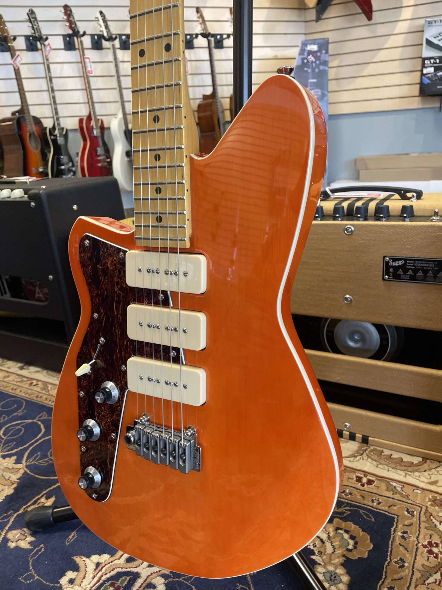 Fat, raw, and bluesy but with just the right amount of bite to cut through. Positions 2 and 4 on the pickup selector deliver classic “quack” but with a thicker tonality. An amazing guitar for both clean and distorted tones with enough twang for surf, but thick enough for rock.