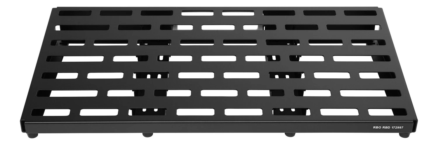 Made from a single sheet of cold-rolled aluminum, the ingenious, lightweight, stiff and rugged construction features vertical support struts for added stability and has not a single welded seam. The result is a completely flat and torsion-resistant surface that can be used edge-to-edge. The innovative slot design allows all cables to be conveniently and neatly routed under the board’s surface. The precisely defined slot pattern provides a perfect fit for our innovative QuickMount system, which eliminates the need for hook & loop tape. Almost all common power supplies can be mounted on the underside. A Premium Gig Bag or sturdy Flight Case is included for safe transportation. Your choice.