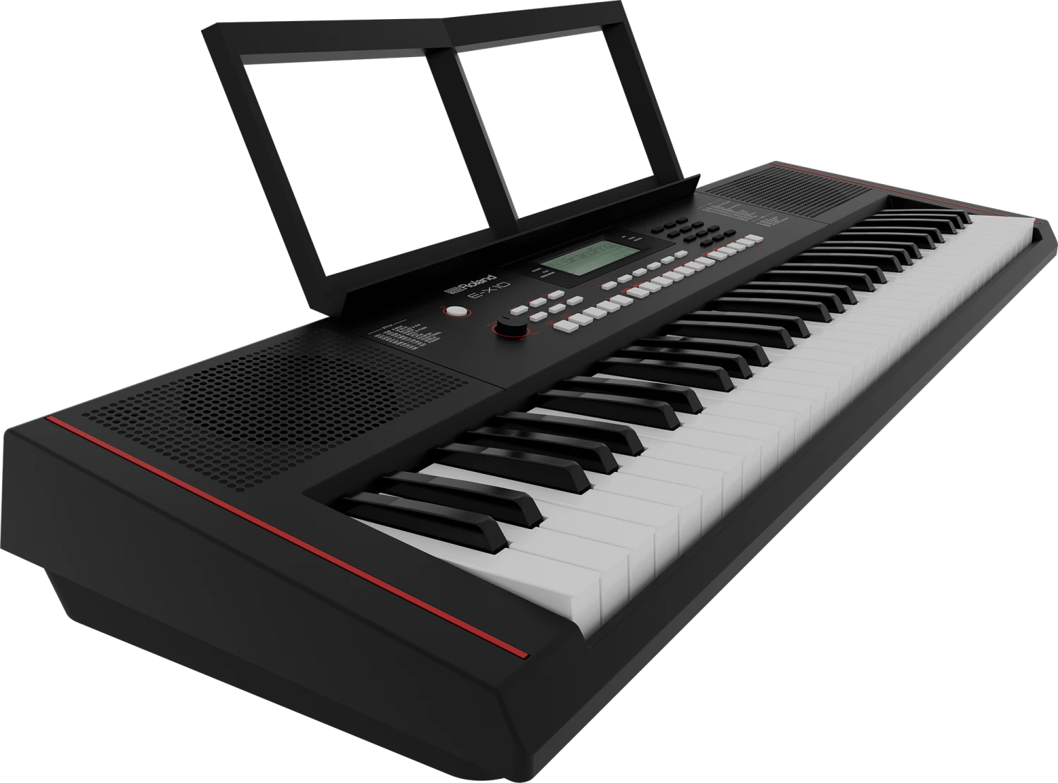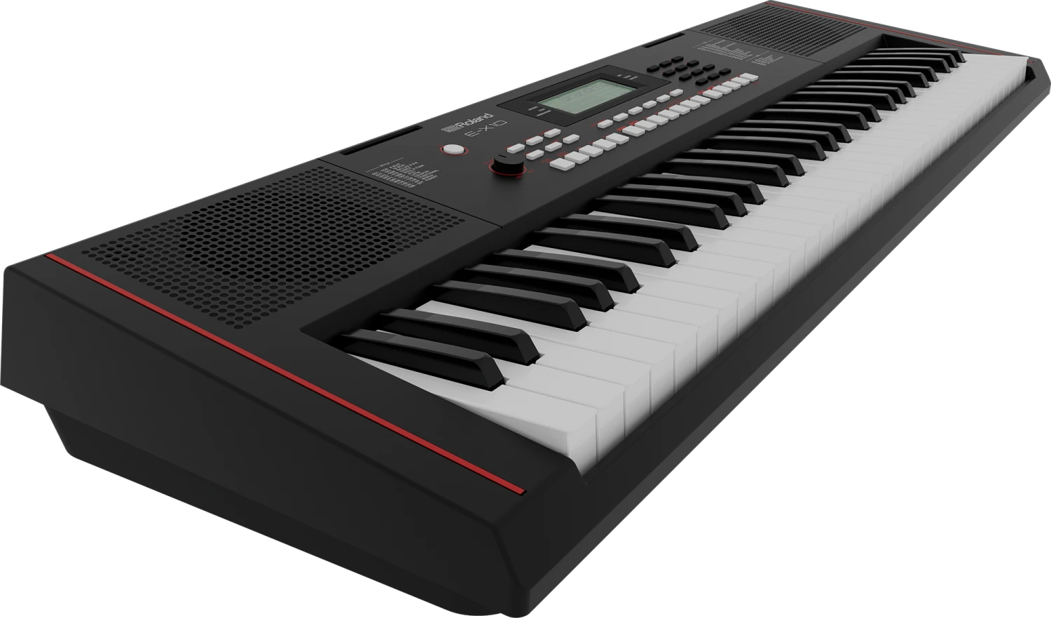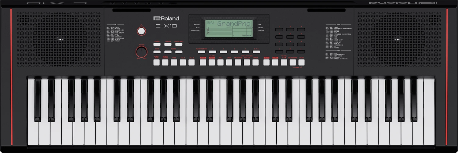 Launch your musical journey with the E-X10, an inspiring starter keyboard with quality features derived from professional Roland instruments. Have fun as you learn with expressive acoustic pianos and hundreds of other sounds. Command a full band with auto-accompaniment and connect a mic to sing along. Record keyboard performances to check your progress. And play anywhere with the sleek portable design, onboard stereo speaker system, and support for battery-powered operation.