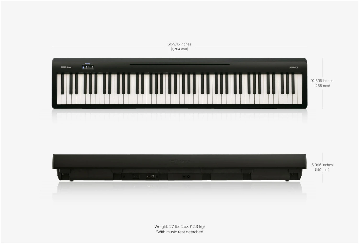 When inspiration strikes, take a seat at the latest model in Roland’s renowned FP piano series; the entry-level FP-10. This affordable digital piano is always ready to play, with a reassuringly authentic feel from the 88-note PHA-4 Standard keyboard, joined by Roland’s evocative SuperNATURAL piano tones through onboard speakers or headphones. With its portable, space-saving design, the FP-10 is the ideal instrument for home use, whether you’re practicing techniques in the spare room or giving performances in the living room. Plus, with Bluetooth® connectivity and powerful onboard features not offered by any other digital model at this price, the FP-10 is the ideal second piano for more experienced players.