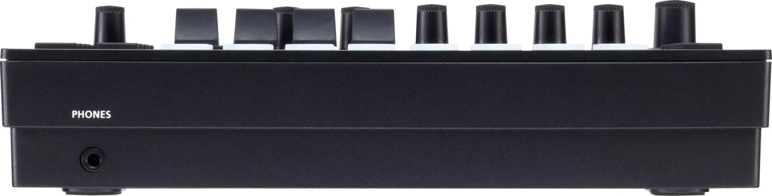 The MC-101 is a professional production tool, sharing the sounds and many of the capabilities of its bigger sibling, the MC-707. And there are advantages to being small. The MC-101 is solid-yet-light and runs for about five hours on four AA batteries, so you can design sounds, create drum patterns, and compose musical phrases just about anywhere. And it’s not just a scratch pad for simple ideas. You can produce fully fledged professional tracks or create backing tracks and accompaniment for live performance.