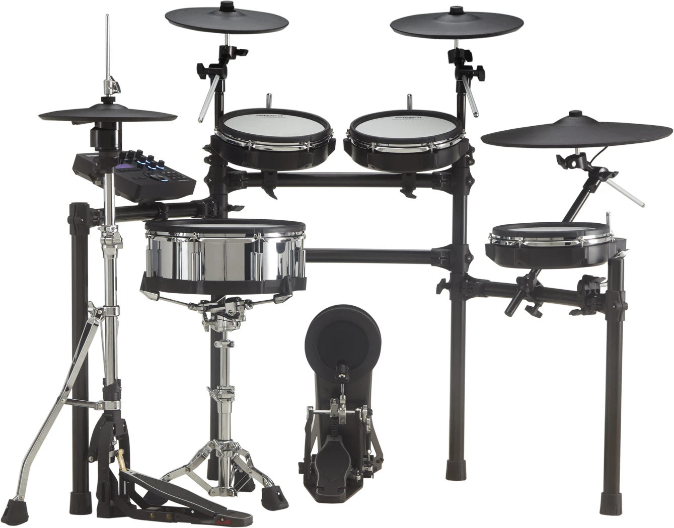 - 14″ digital snare and 18″ ride cymbal with high-resolution, multi-sensor triggering for unparalleled dynamics and accurate positional detection
