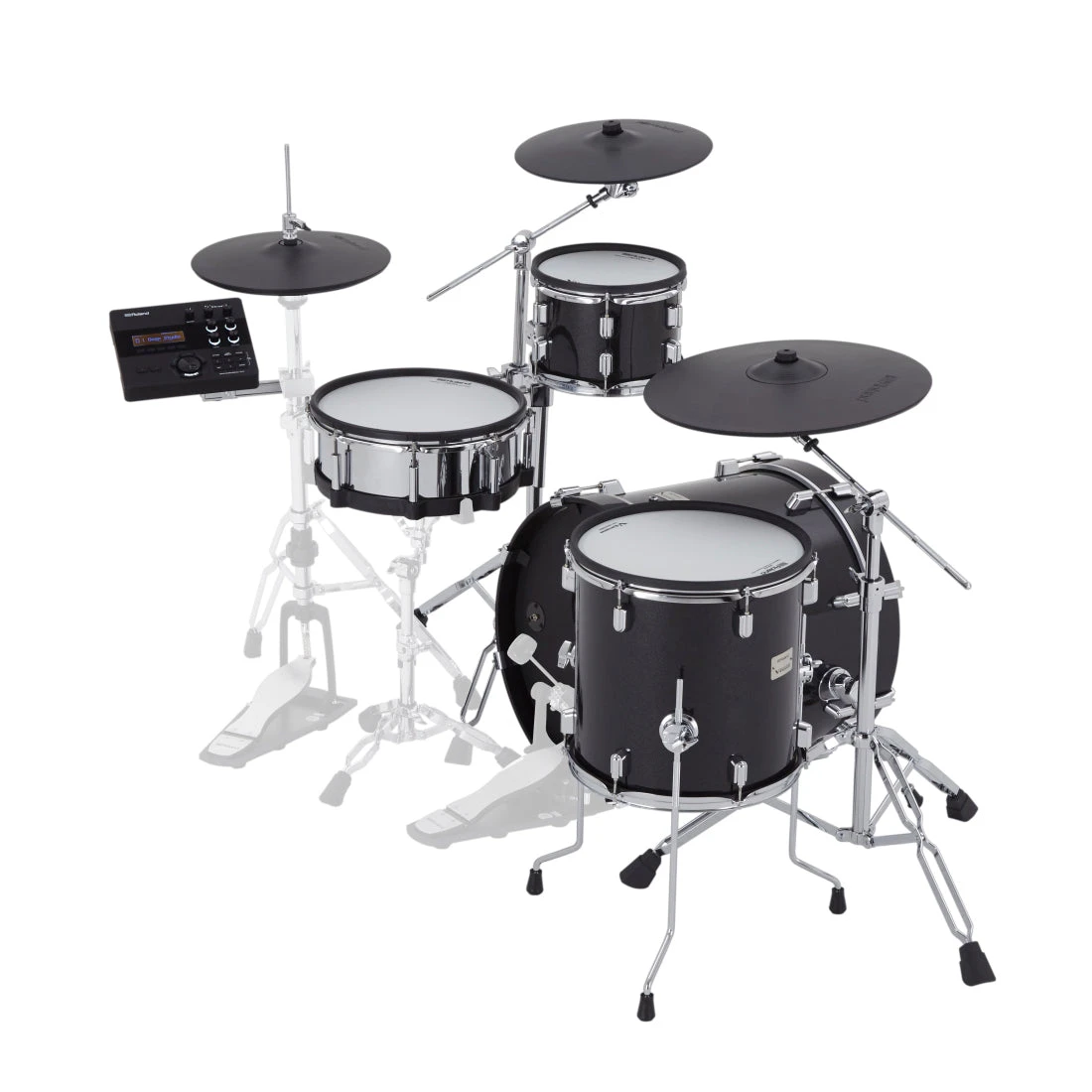 Four-piece V-Drums Acoustic Design kit with full-size wood shells and upgraded double-braced chrome stands