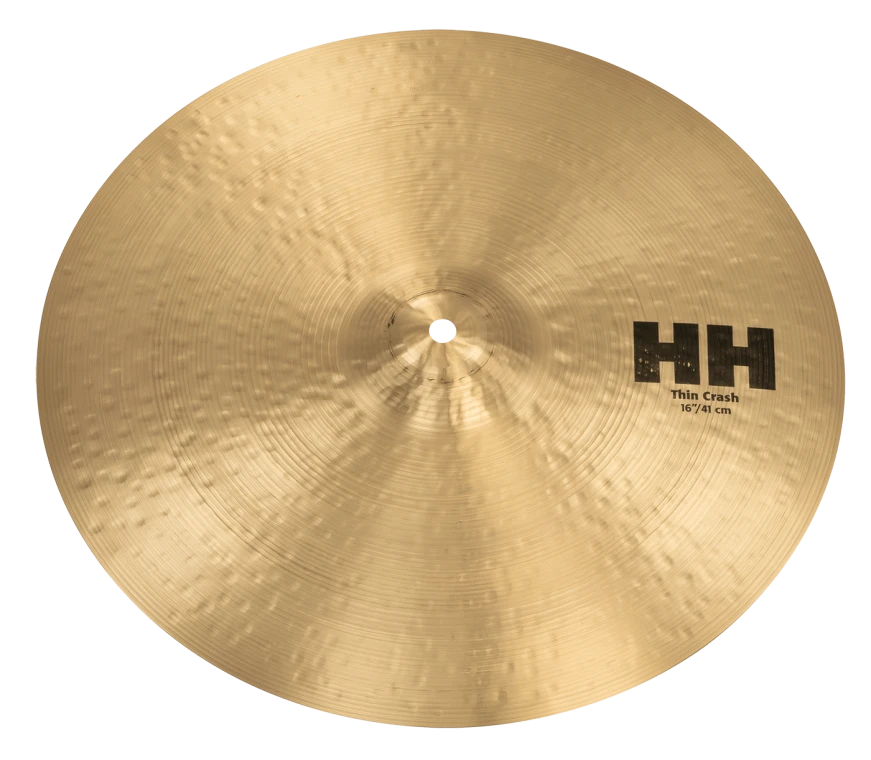 The HH Thin Crashes have a full-bodied musical response that is low, dark and warm. The low profile produces a quick attack and rapid decay.