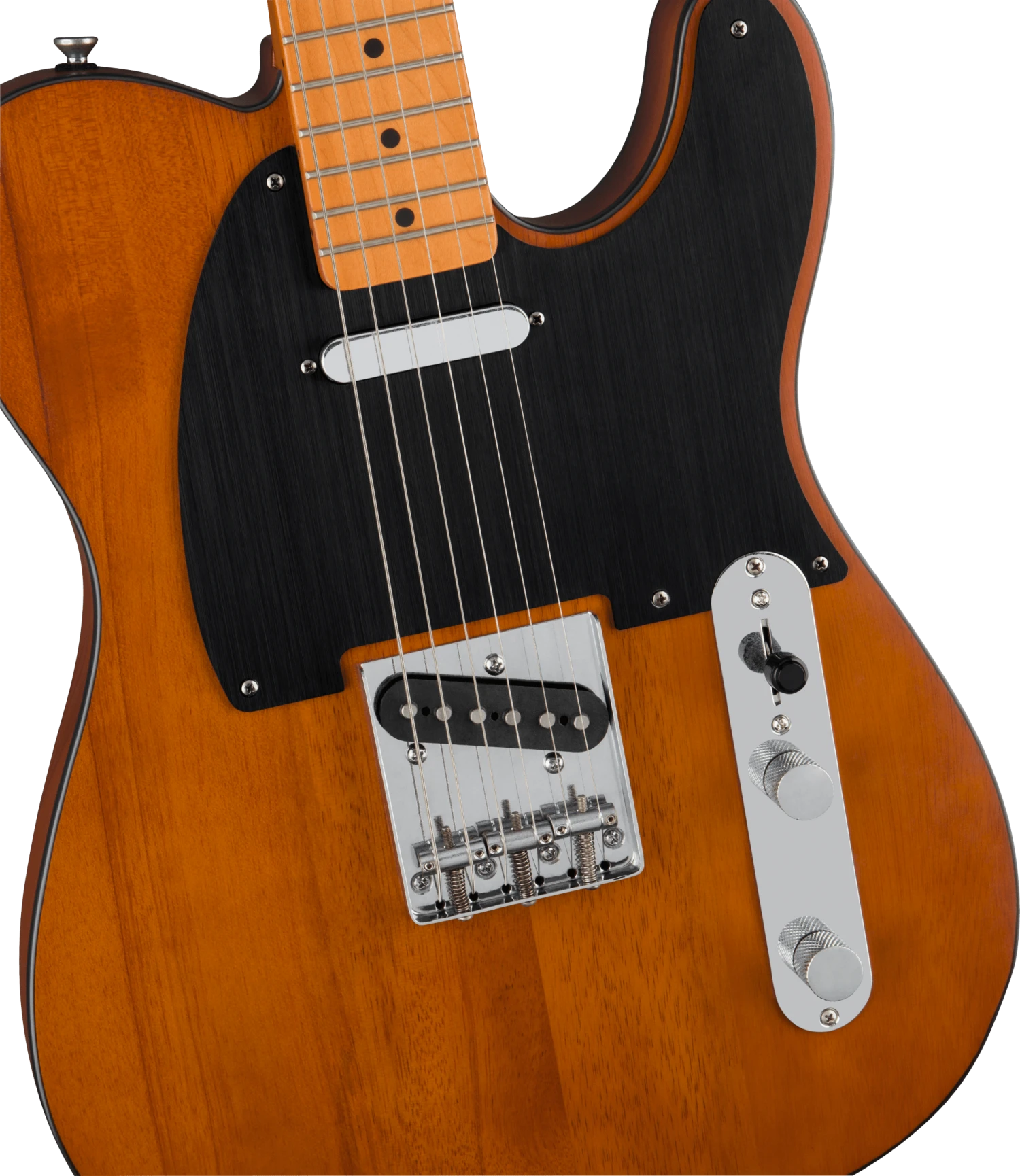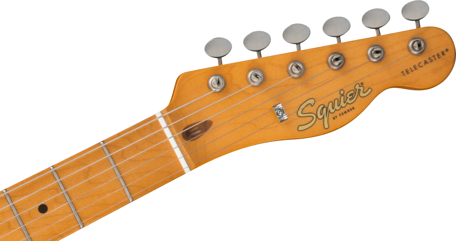 The Squier® 40th Anniversary Telecaster®, Vintage Edition is a soulful tribute model trimmed with a collection of classic features for the retro-minded Squier enthusiast. Featuring aged chrome hardware, an anodized aluminum pickguard, a vintage-tinted maple neck, an engraved anniversary neck plate and satin finish throughout, this Tele® honors the heritage of the Squier catalog and its ancestry. Player-friendly refinements of this commemorative model include a slim and comfortable “C”-shaped neck profile for an easy playing feel, vintage-style tuning machines and 3-saddle string-through-body bridge for authentic performance and style, and Fender-Designed single-coil pickups with alnico 5 magnets for familiar Tele tone.
