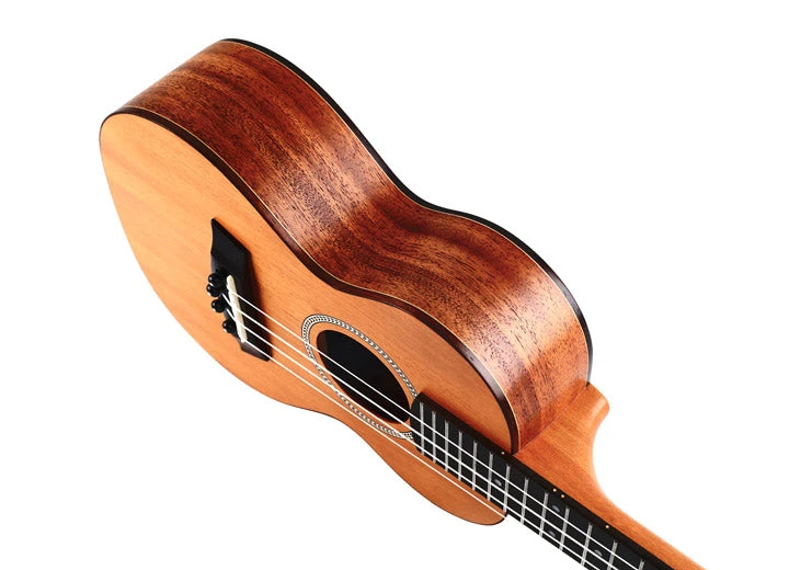 The Rock Roots ukulele boasts an all solid construction, essential for anyone wishing to achieve optimal resonance from their instrument. The warm, rich tonal quality that has made mahogany a popular ukulele tonewood is an asset to the Rock Roots, which offers a perfect blend of sound and playability. This ukulele also features a Herringbone rosette and premium rosewood bindings to create a classic, timeless appeal. The satin finish ensures that the true vibrancy and colour of the Rock Roots’ solid mahogany is on full display. If you’re looking for a sound that really stands out, this is the ukulele for you.