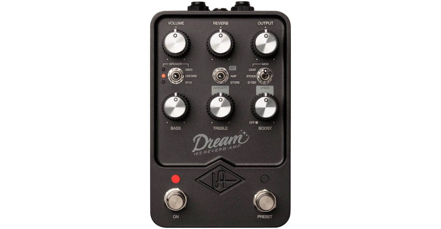 The UAFX Dream ’65 Reverb Amplifier pedal gives you the essential American tube amp used by artists and producers for 60 years, from Muddy Waters to The Beatles to Elvis Costello.