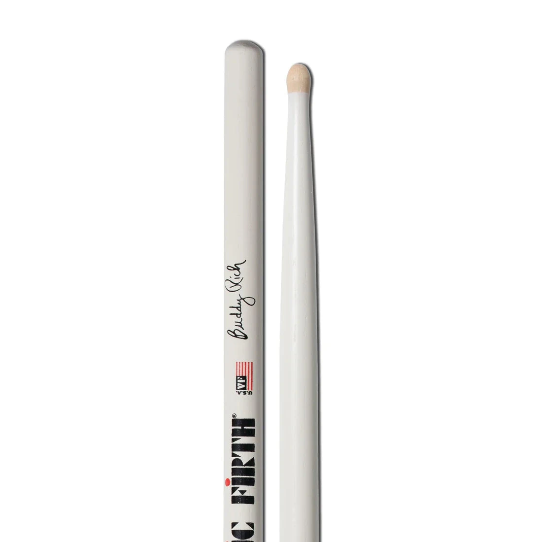 A drumming legend, the Buddy Rich. The Buddy Rich signature stick is designed as a modified 5A with a larger blended tip,neck, and shoulder for an incredible feel and balanced performance.